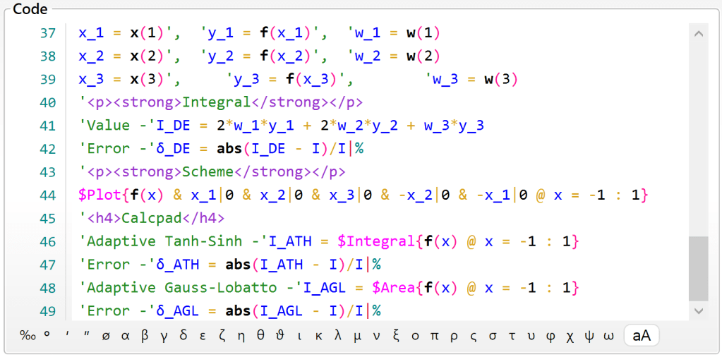 Calcpad supports most of the common inline tags but not complicated multiline tags like tables and numbered lists. The reason is that Calcpad parses and executes the code line by line. The available Markdown tags that you can use in Calcpad are listed in the following table:
