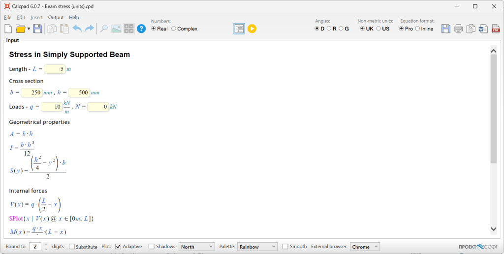 By mixing Markdown with equations in Calcpad, you can create professionally formatted reports for your engineering calculations and export them to Html, Pdf and MS Word files. To demonstrate this, we created a sample RC beam design worksheet to Eurocode 2: